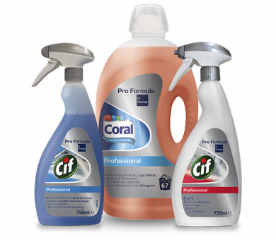 Pro Formula est une gamme complète de produits de nettoyage professionnels prêts à l'emploi associés à des marques connues d'Unilever. La gamme a été spécialement conçue pour répondre à vos besoins de nettoyage professionnel. Des plans et des guides de nettoyage en ligne gratuits vous aideront à respecter les normes d'hygiène.