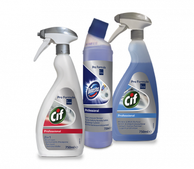 Dzięki wieloletniemu doświadczeniu, wiemy jakich profesjonalnych środków chemicznych szuka Klient oraz z jakimi problemami podczas sprzątania najczęściej się zmaga. Wyjątkowa linia preparatów Pro Formula spełnia potrzeby nawet najbardziej wymagających, a marki takie jak Domestos czy Cif cieszą się ogromnym powodzeniem wśród kupujących.